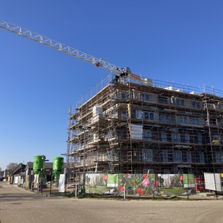 Aan de oostkant van Druten, tussen de Jan van Galenstraat, Karel Doormanstraat en De Ruijterstraat, bouwen we samen met Van de Klok 40 levensloopgeschikte en sociale huurappartementen. Bedoeld voor kleine huishoudens. Op donderdag 5 maart 2026 vierden we, mét een fantastisch lentezonnetje, het hoogste punt. Een mijlpaal waar we graag bij stil stonden. We trakteerden de vakmensen van Van de Klok op een frietje.