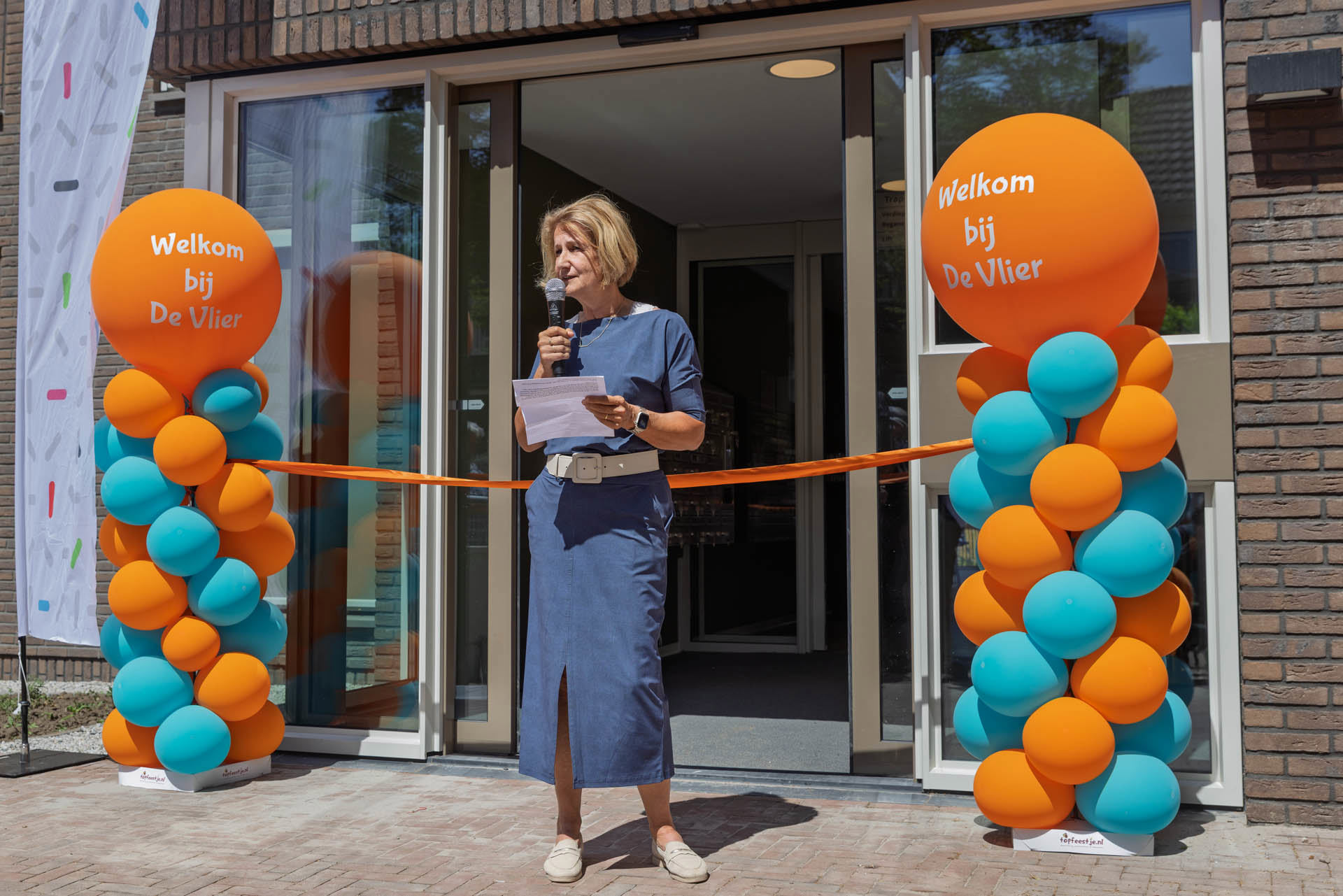 Wethouder Grete Visser knipte een lint door en opende hiermee het woongebouw officieel. Daarna kon iedereen een kijkje nemen in een appartement, in een van de gezamenlijke huiskamers en in de tuin. We hoorden veel mensen zeggen dat De Vlier een mooi woongebouw is dat goed in de buurt past. Daar zijn we trots op. We wensen de toekomstige bewoners een fijn thuis.